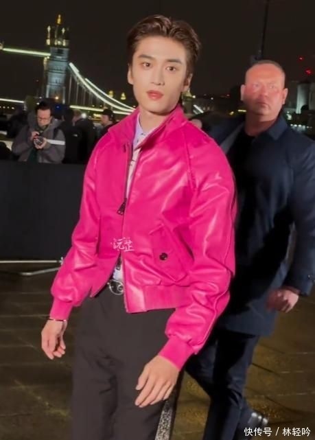 这位95后新生代以一身巴宝莉2024秋冬系列粉色亮面皮质夹克亮相,下搭同系列工装风阔腿长裤,撞色大胆却不失协调,硬朗剪裁勾勒出挺拔肩线与修长比例,少年感扑面而来又不失设计巧思。